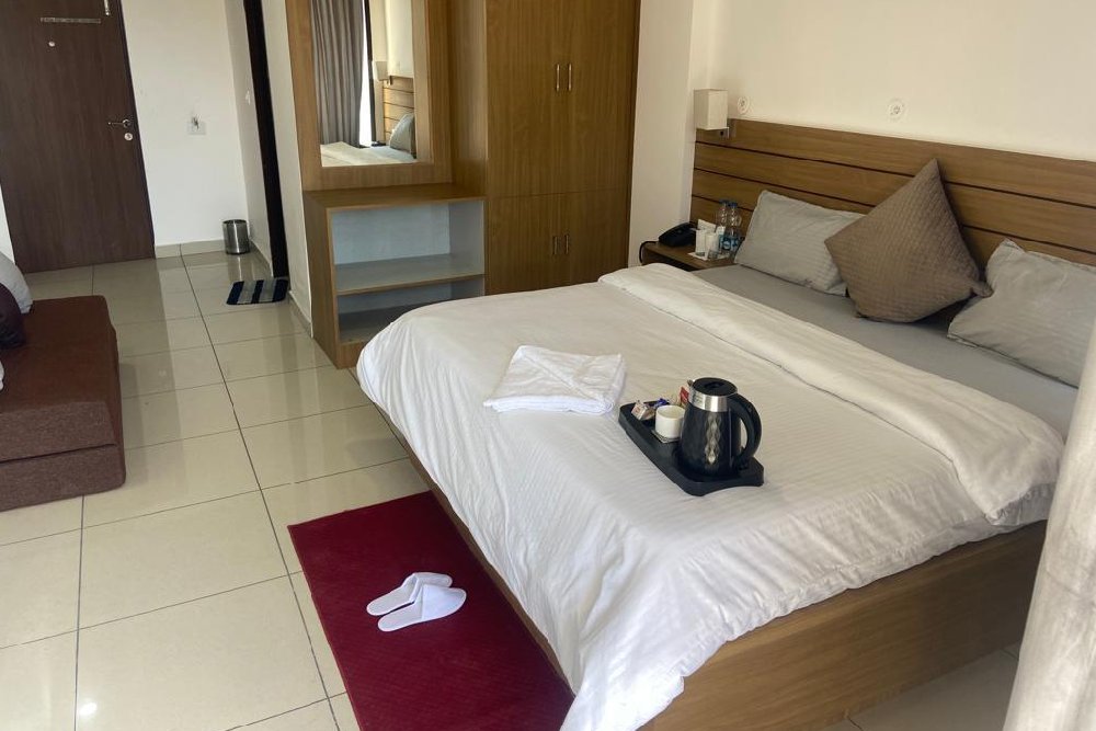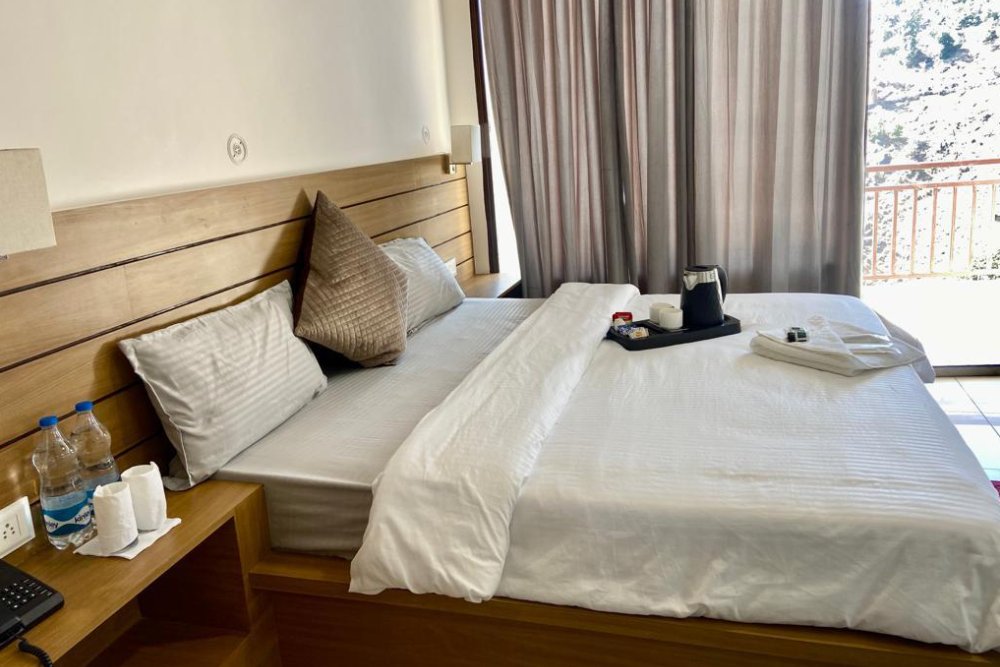 The Bliss Hotel is a high-end and upscale property offering premium amenities and services, such as fine dining restaurants, a shared lounge and a terrace, open garden, ample parking space, elegant and spacious rooms furnishings with personal balconies looking over valley, and an overall atmosphere of luxury and sophistication.